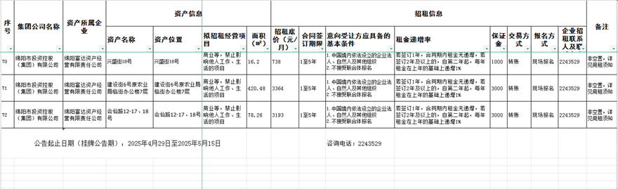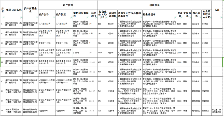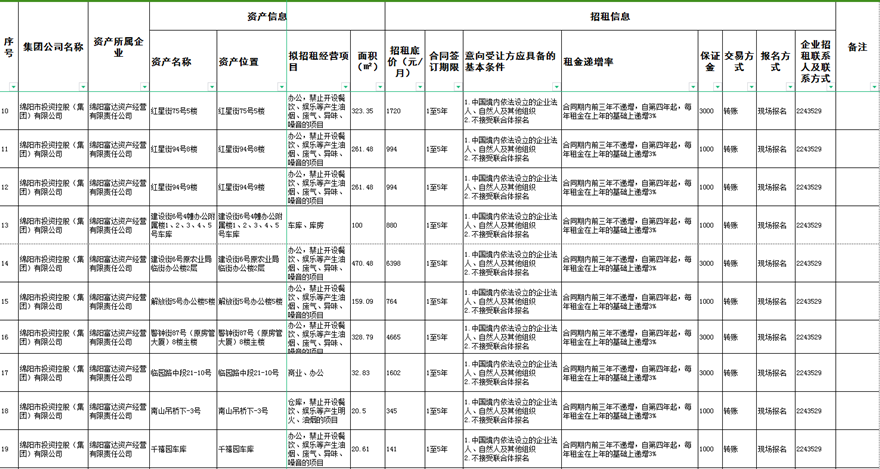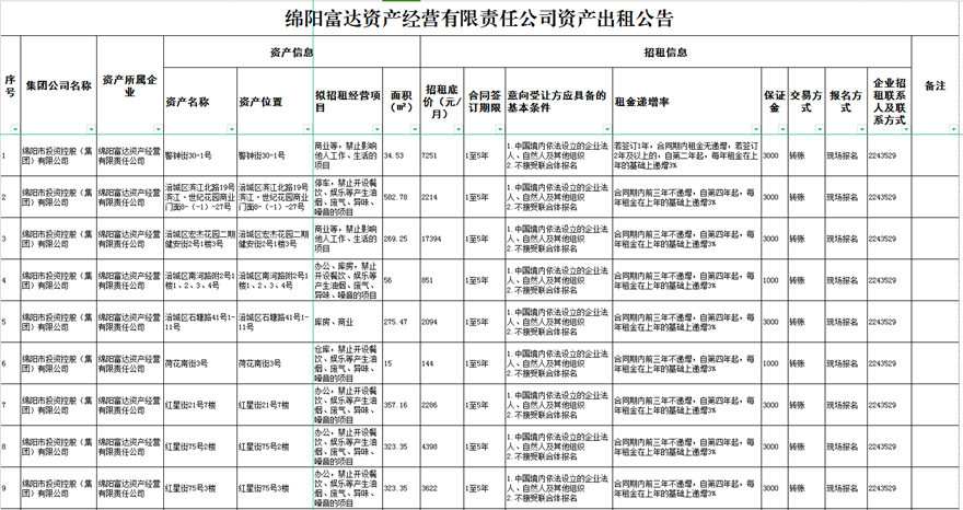 綿陽富達(dá)資產(chǎn)經(jīng)營有限責(zé)任公司資產(chǎn)出租公告