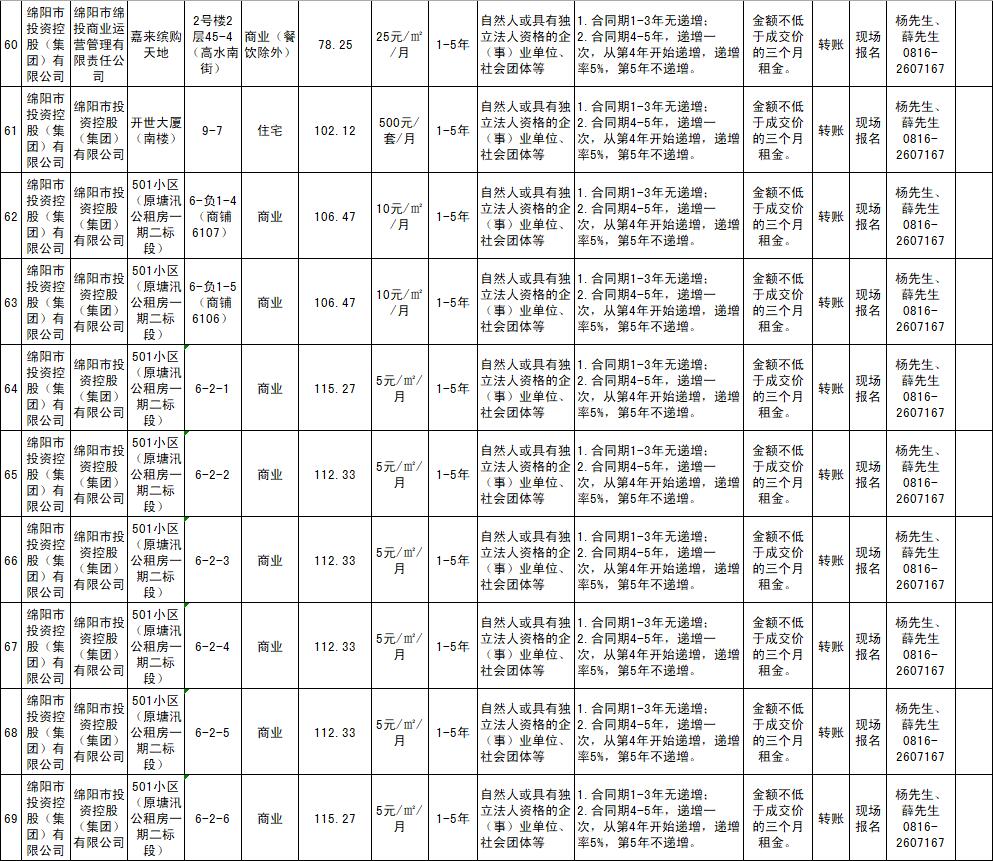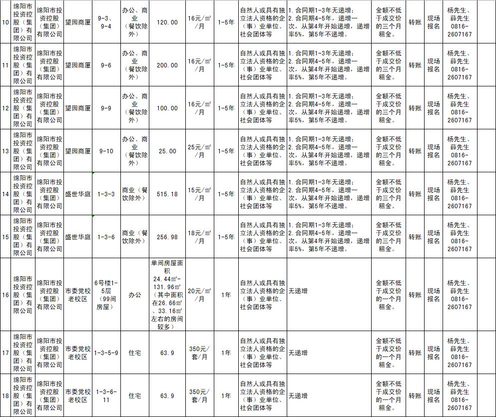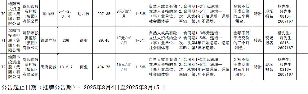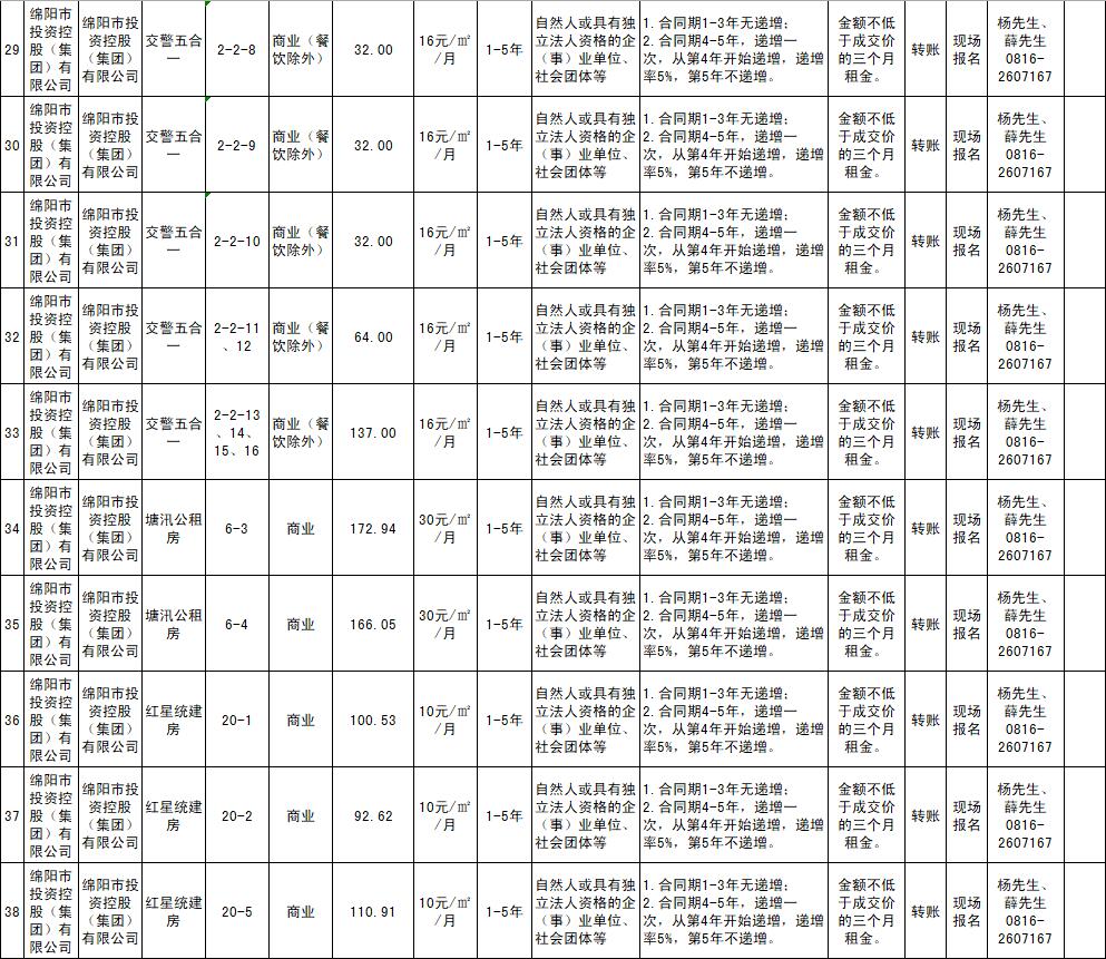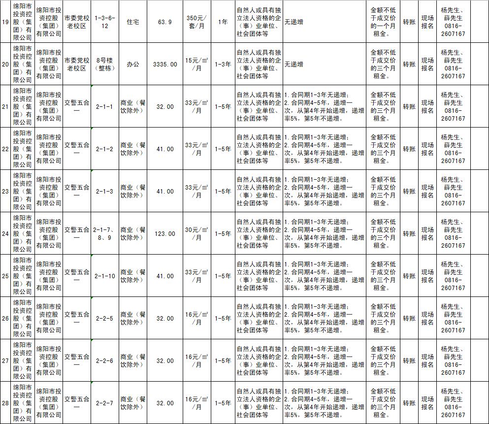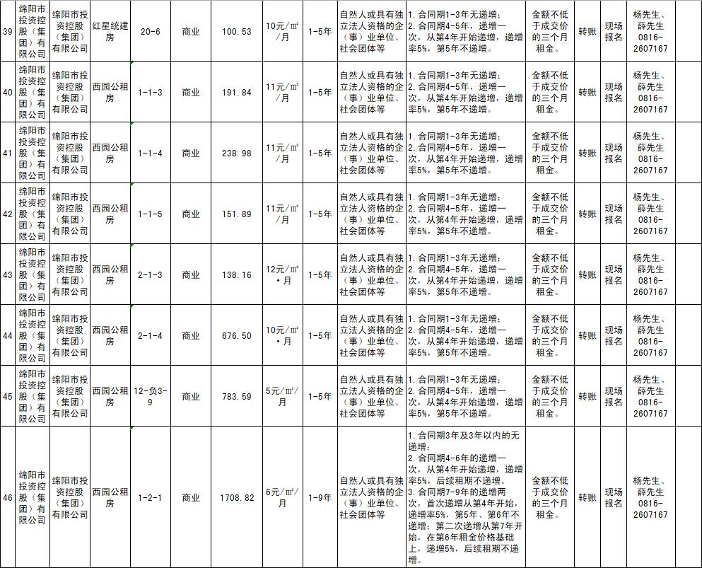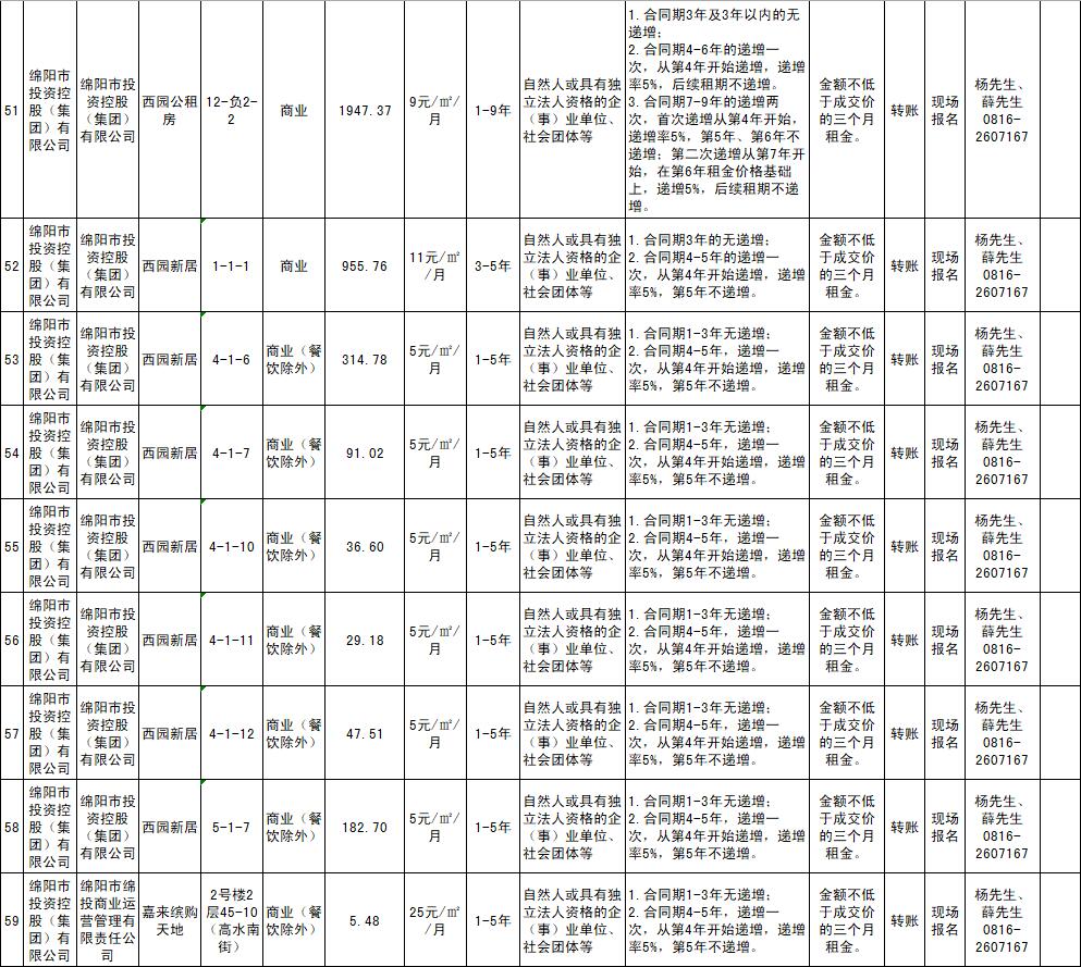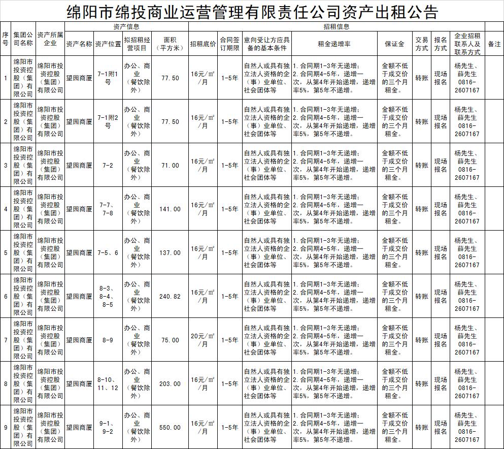 綿陽市綿投商業(yè)運營管理有限責任公司資產(chǎn)出租公告