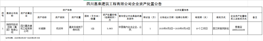 四川嘉來建筑工程有限公司企業(yè)資產(chǎn)處置公告