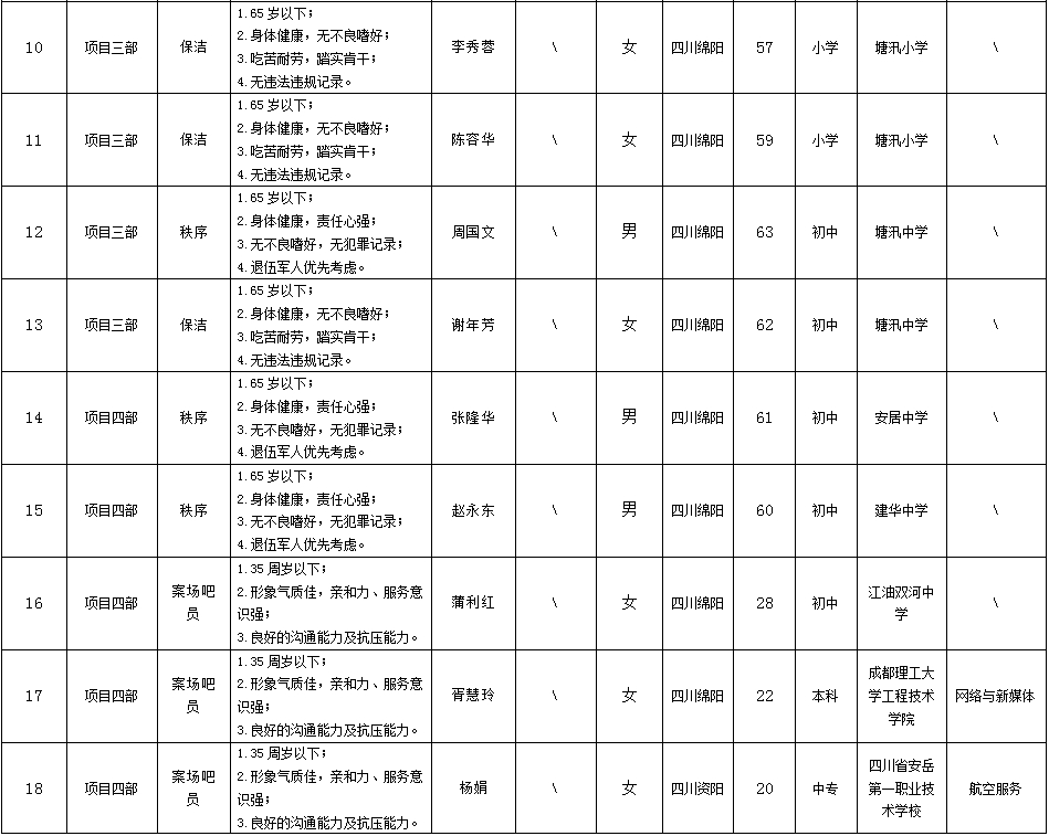 根據(jù)綿陽市康來物業(yè)服務(wù)有限公司發(fā)布的招聘公告及招聘相關(guān)規(guī)定,經(jīng)面試等程序,擬錄用向興容等同志到各項(xiàng)目部工作,現(xiàn)予以公示,具體情況如下: