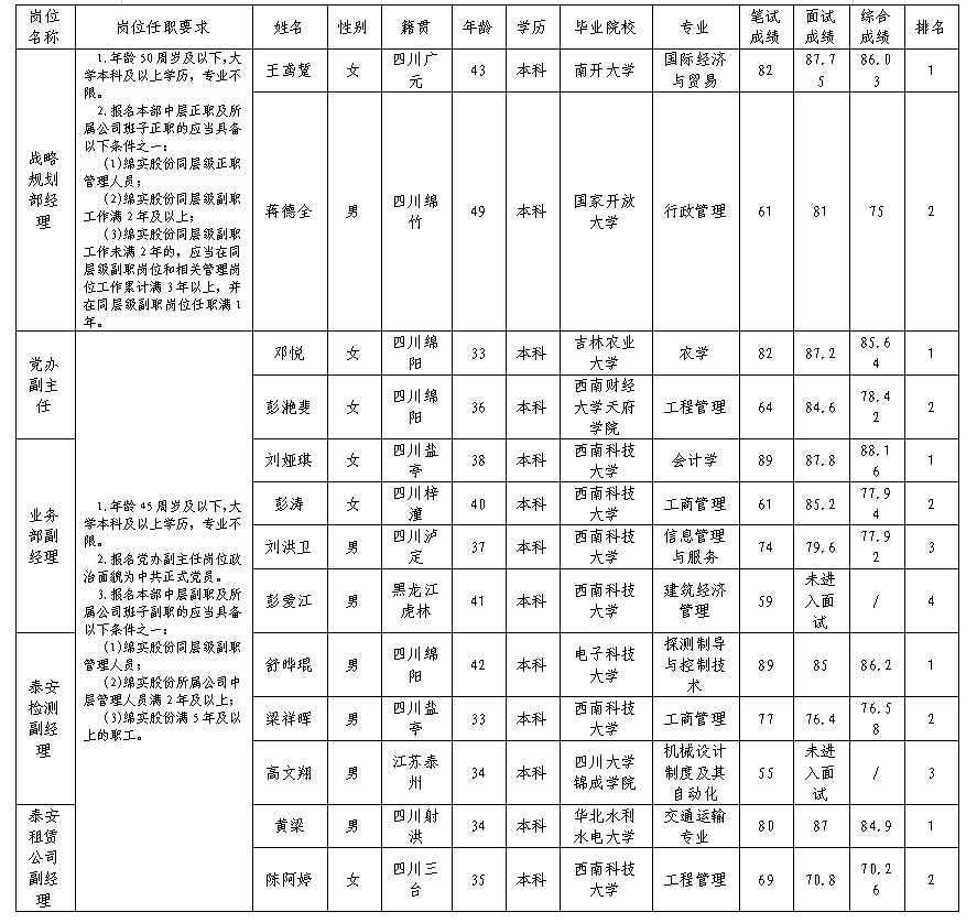 【內(nèi)部競聘】綿陽市汽車實驗駕駛技術(shù)學校股份有限公司 關(guān)于戰(zhàn)略規(guī)劃部經(jīng)理等崗位內(nèi)部競聘測試成績的公示
